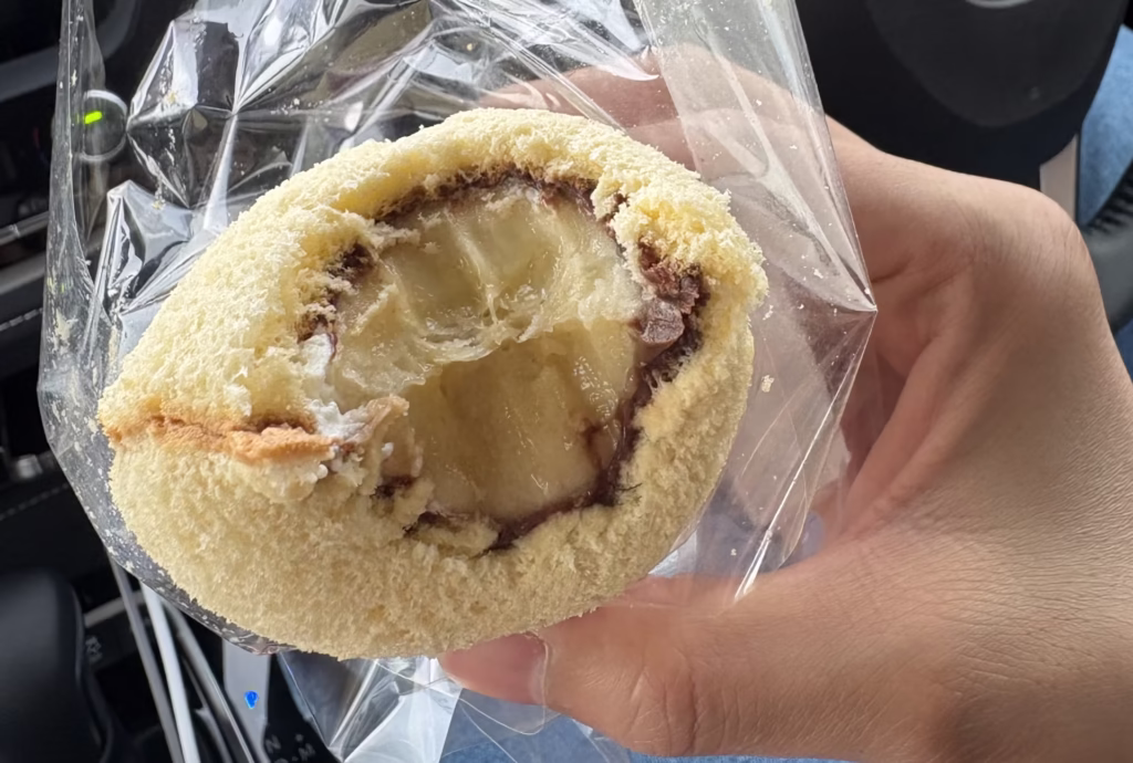 バナナボートはこんな感じで丸ごと1本バナナが入っています。(食べかけを見せるな)