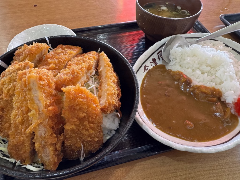 車でしばらく走って、福島のSAの会津屋で食べたソースカツ丼+カレー(食べ過ぎ)。うまい。
