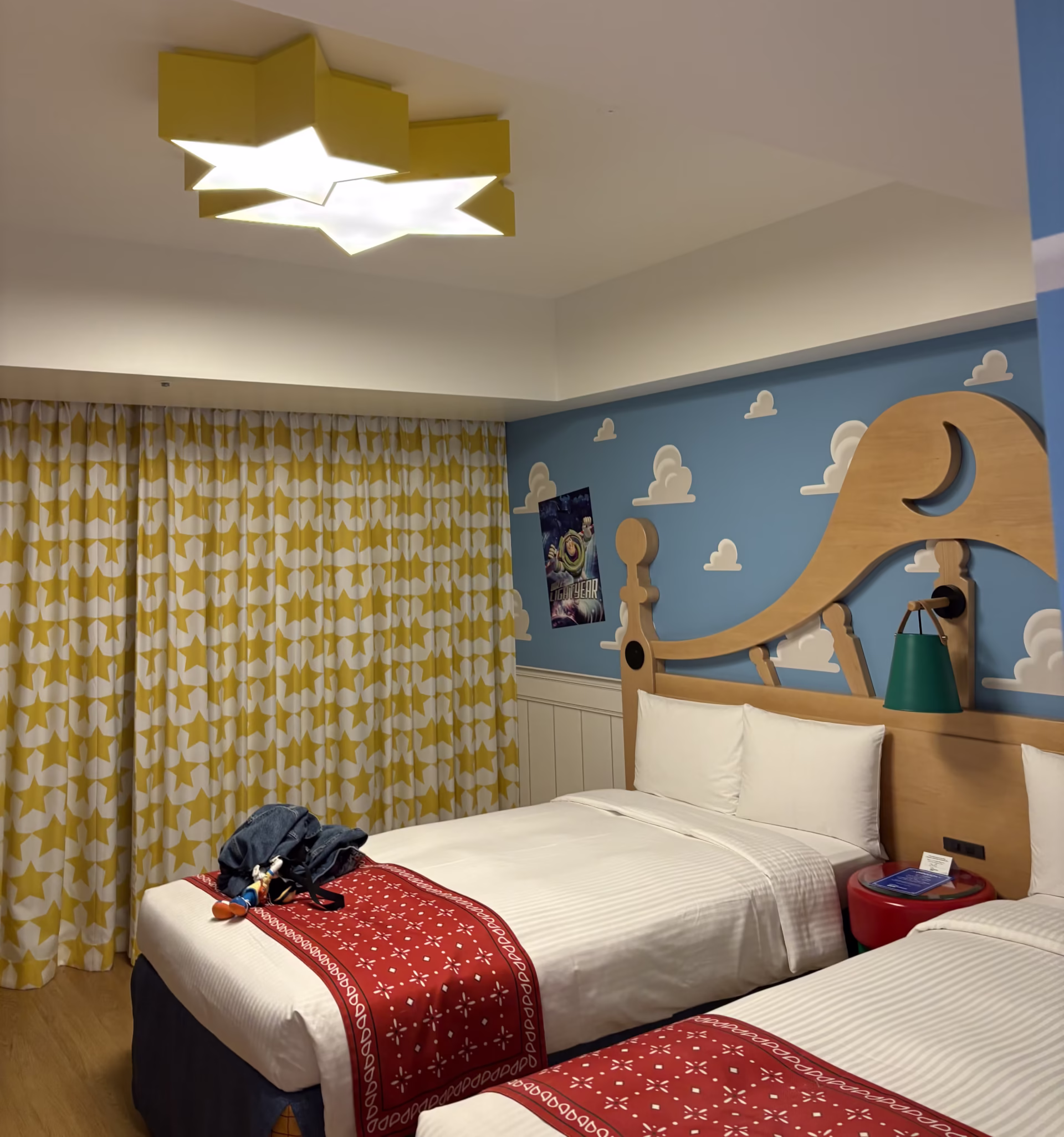 客室もアンディの部屋みたいな雰囲気になっていて可愛い。照明が星になってるのも良い!